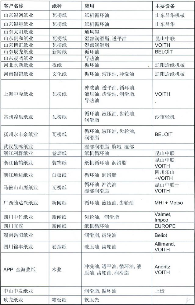 道達(dá)爾在歐洲造紙業(yè)的主要客戶